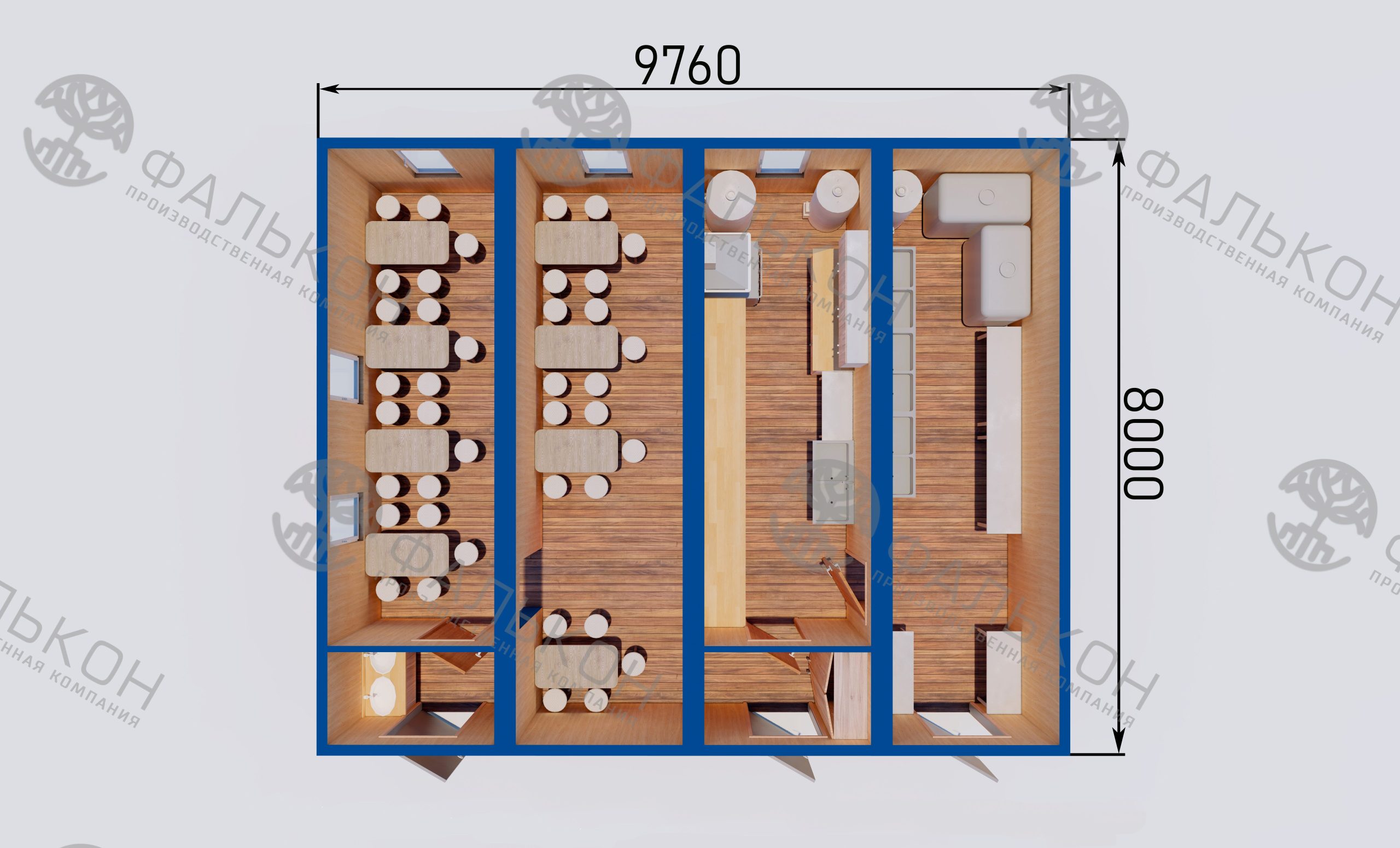 Модульное здание 10×6 м в упаковке ТРАНСПАК (4 модуля).