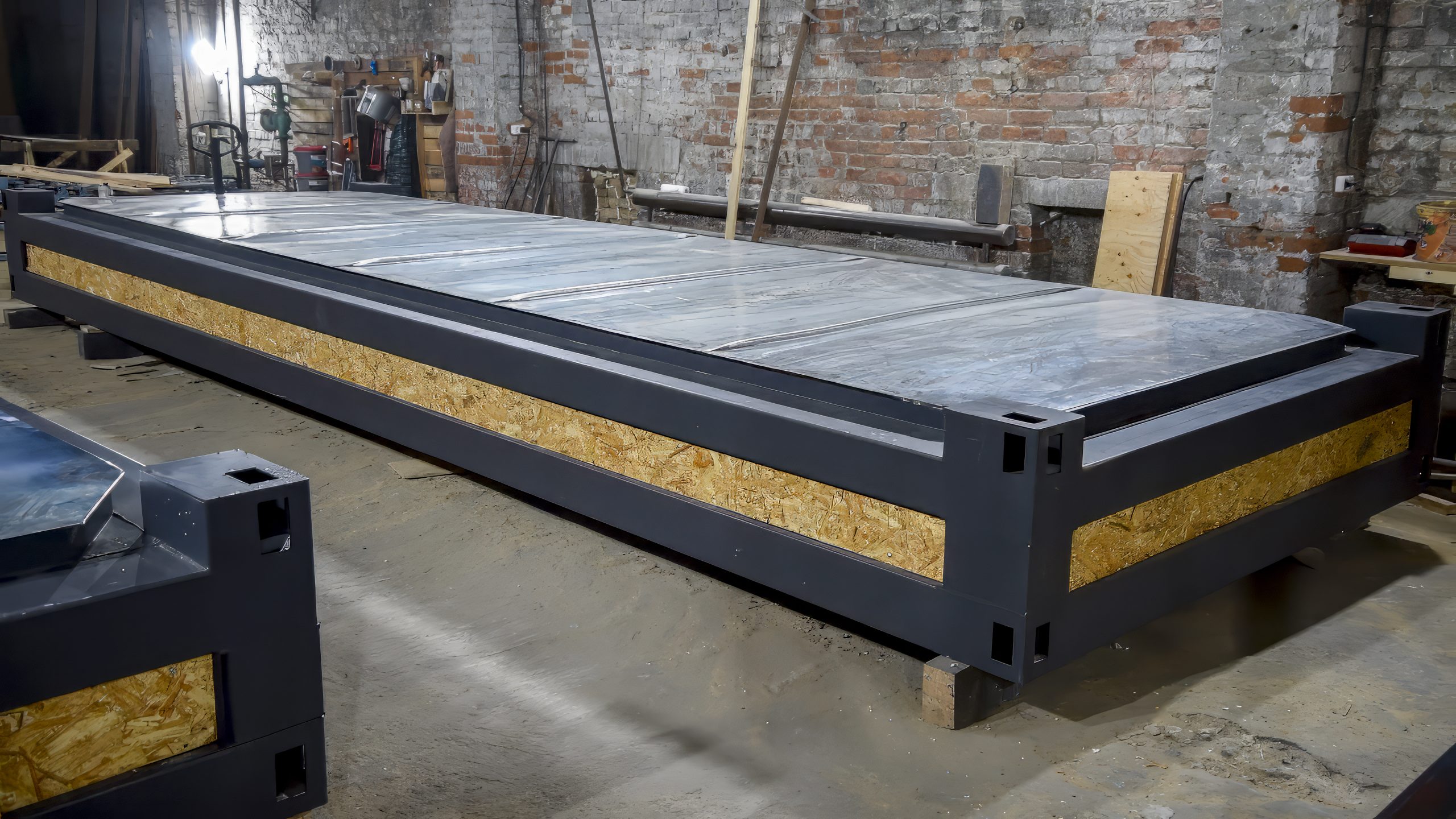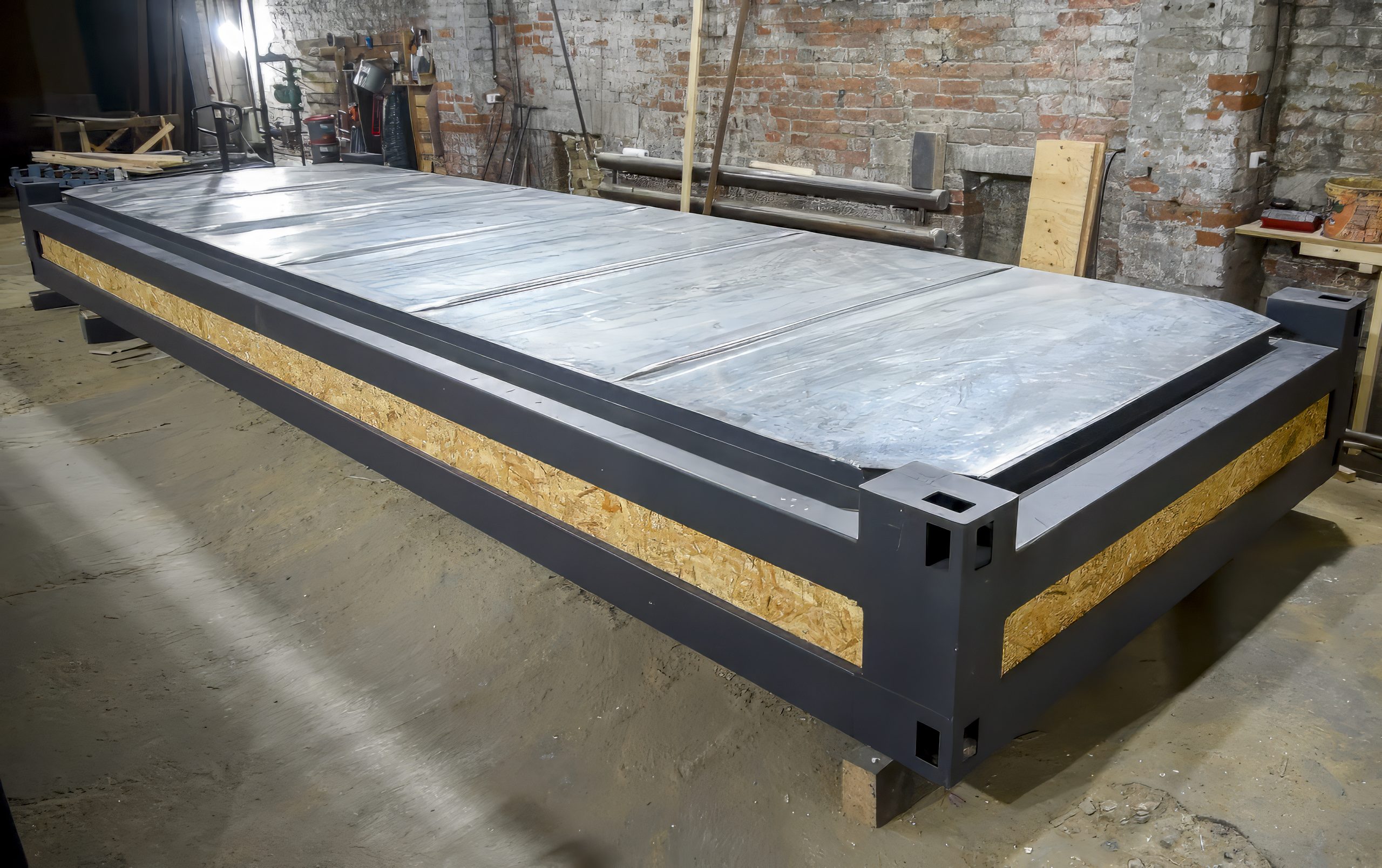 Каркас и ограждения:: стальной каркас, антикор, стены/пол/кровля из сэндвич-панелей 150 мм.