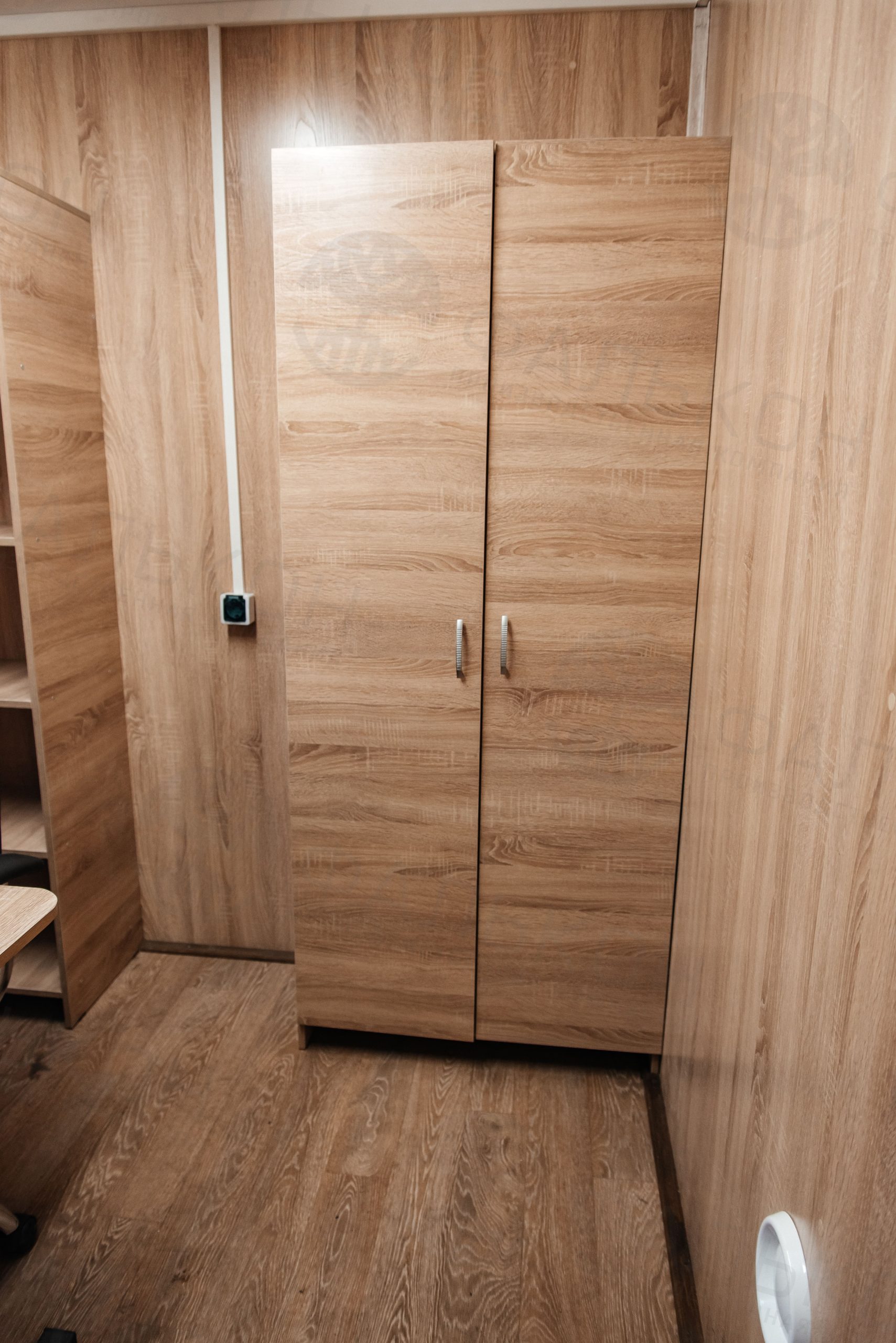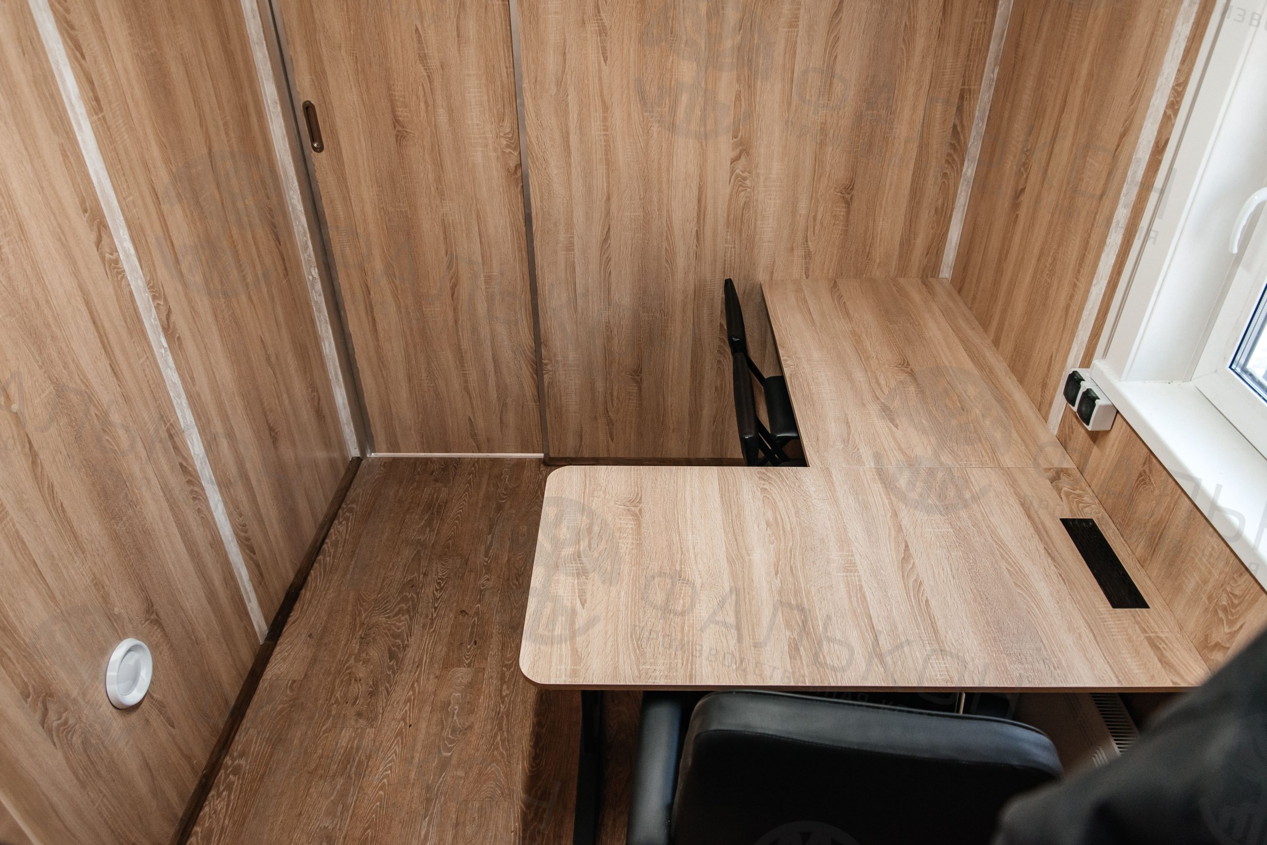 Отделка внутри:ЛДСП 16 мм, потолок — профнастил RAL9003, пол — линолеум, плинтус.